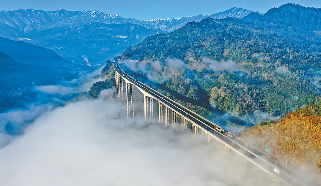 干海子特大桥是雅西高速建设的重难点控制性工程之一,位于海拔2500米的四川雅安石棉县境内,桥总长1811米,设计宽度24.5米,共36跨,最高桥墩高达110米。工程项目实现四项世界第一:第一座最长全钢混凝土桁架梁桥;第一座最高的钢管混凝土格构桥墩、组合桥墩、混合桥桥墩;同类结构中每联最长的连续结构;第一次全面采用钢纤维钢管混凝土施工。