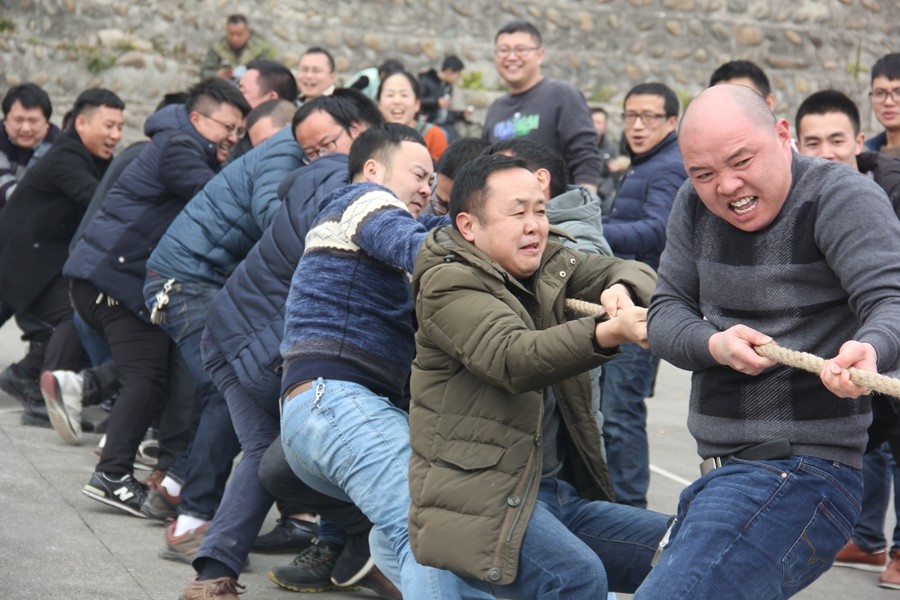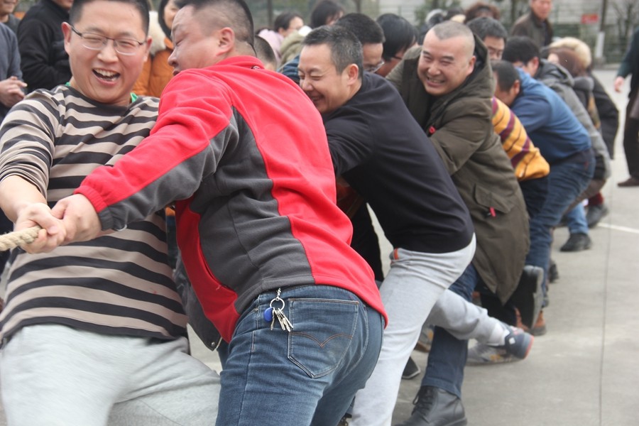 随后是桥隧室、道路室、各分公司、外派机构等共6支队伍参加了拔河比赛,锣鼓声、呐喊声响彻整个运动场!比赛结束时,有的员工手被磨破了,有的鞋蹬掉了底,但大家都分外兴奋、开心!最终总部机关队获得了冠军、桥隧研究室获得亚军、广元分公司获得季军。