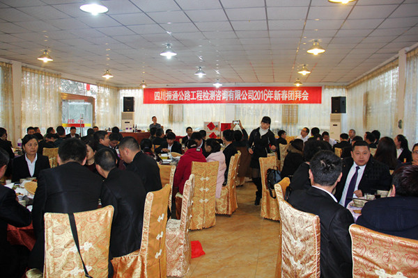 2016年2月26日晚,四川振通公路工程检测咨询有限公司2016年新春团拜会在西南科技大学后花园圆满举办,公司全体员工齐聚一堂,共同庆祝2016年的到来。